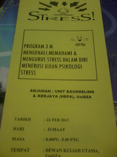 Nama program: 3M-Megenali, Memahami dan Mengurus Stress.. anjuran unit Kaunseling dan Kerjaya my Universiti la..(university oxford)hak2..